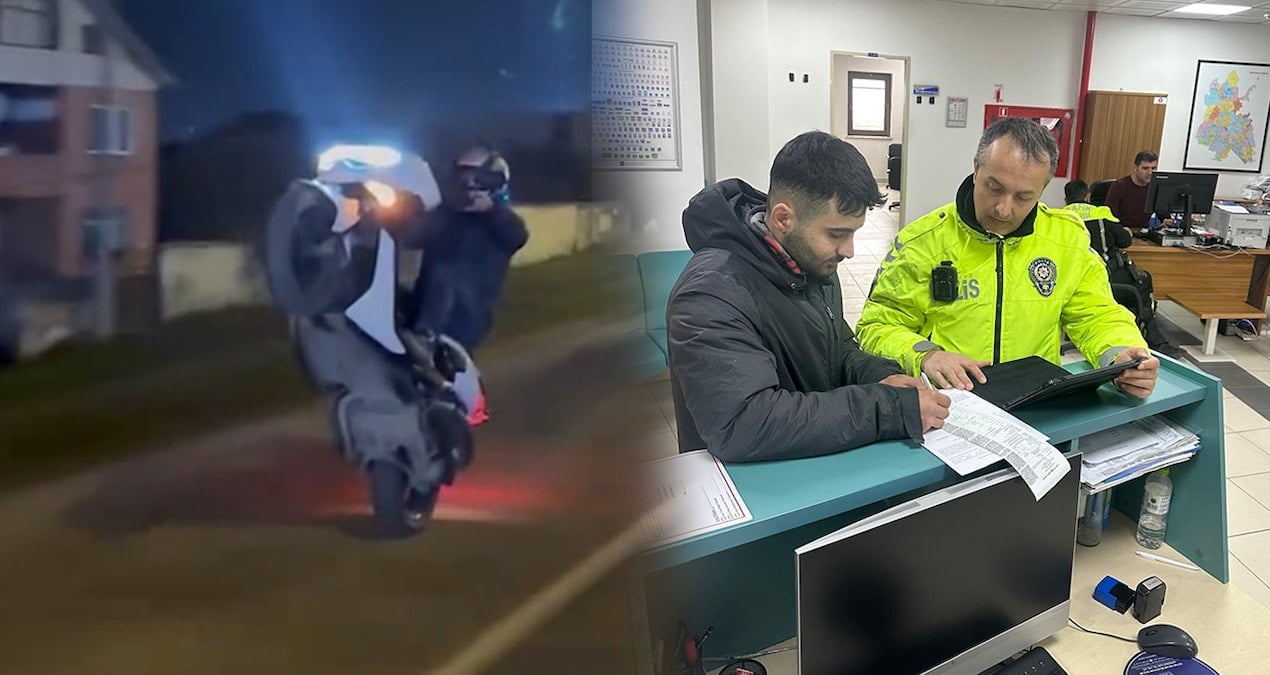 Alınan bilgiye göre Düzce’de, kentin değişik noktalarında motosiklet üzerinde akrobatik ve tehlikeli hareketler yapan 21 yaşındaki Muhammed Nuri K. bu görüntüleri sosyal medyada paylaştı. Görüntüleri fark eden polis ekipleri, motosiklet sürücüsünü plakasından tespit etti. Polis ekipleri tarafından şehir merkezinde yakalanan sürücü, Düzce İl Emniyet Müdürlüğü’ne götürüldü. Sürücüye 5 bin 327 TL idari para cezası uygulandı ve motosiklet trafikten men edildi.